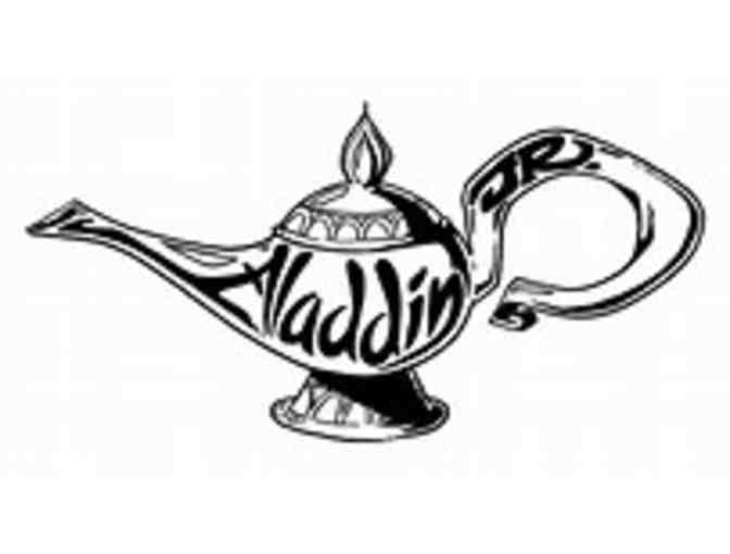 Aladdin Birthday Party (must bring your own cake/cupcakes, food) Party receives 10 tickets to Aladdin Jr (your choice of date) a meet and greet with cast, director and singing happy birthday from the stage and shout out in the curtain speech.