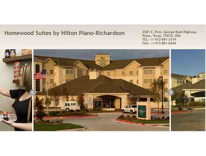 One complimentary weekend night stay at the Homewood Suites by Hilton, Plano/Richardson.