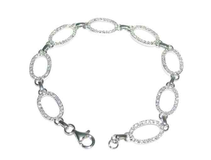 Beautiful oval link CZ bracelet in sterling silver. This bracelet measures approximately 7.5 inches and is sure to add sparkle and elegance to any occasion!