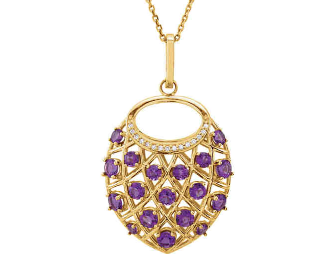 Genuine Diamond and Amethyst Necklace in 14k Gold