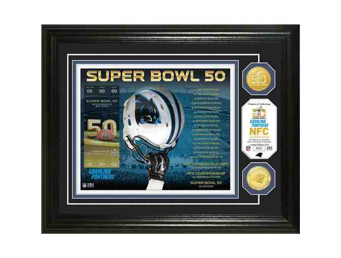 - This collectible frame is highlighted with a minted 39mm bronze 2015 NFC Champions commemorative coin and a 39mm bronze Super Bowl 50 commemorative coin.