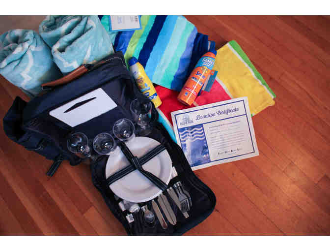 Recipe for the Perfect Family Fun Day: After packing your sunblock and your brand new beach towels (in grown up and kid size), load up on some caffeine at Coffee Bean on the Santa Monica pier, with your $25 gift card, for your day at Santa Monica Pier’s Pacific Park for which you have 4 unlimited ride wristbands! Spend your $50 Visa Gift card freely—say Yes to those lovely stuffed animals that you never let your kids buy at amusement parks! Everyone will be all smiles as you head down to the beach with your cool picnic backpack, its place setting for 4 that you have filled with your family’s favorite foods, all of you together watching the setting California sun.