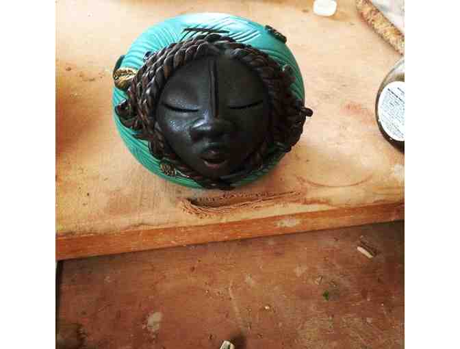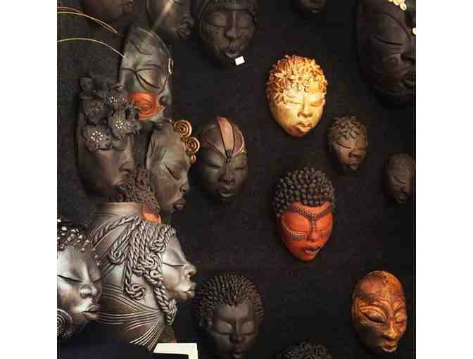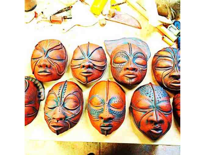 Artisan pottery from Woodland Heights Studio in Richmond, VA. Product from the Artists 2 Africa Project........Masks are