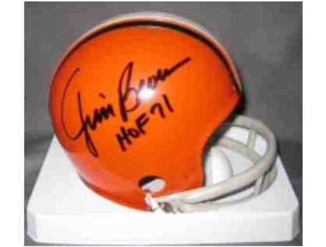 - Cleveland Browns Jim Brown Autographed Football Mini Helmet. Comes with Certificate of Authenticity.