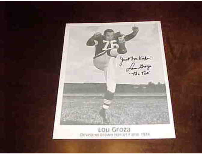 - Cleveland Browns Lou Groza Autographed Football Photo. Comes with Certificate of Authenticity.