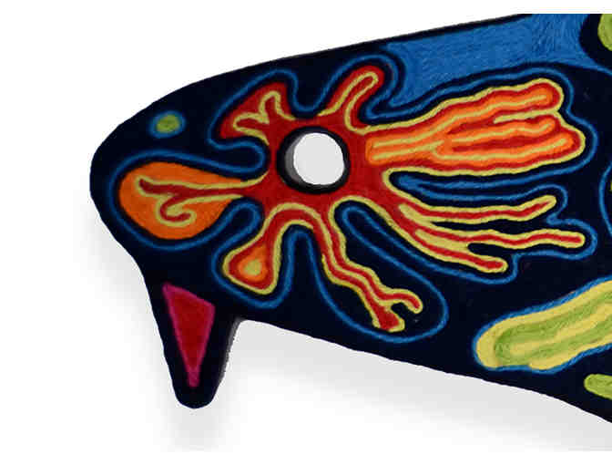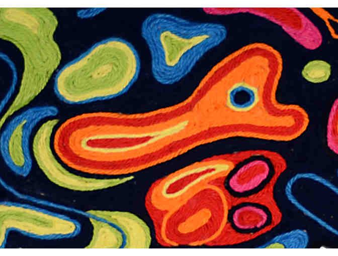 Artist Statement: I have been fascinated by folk art for as long as I can remember. The history and traditions surrounding the art add depth and meaning. I try to share these explorations as I teach, and I am inspired as I create. The Huichol are a native people of western Mexico, known for their intricate and vibrant yarn paintings. Originally based in ritual religious practices, yarn votive objects were created by the artist as an offering to the gods; meditation, prayer, and artmaking interwoven. Today, more complex yarn paintings are made commercially, preserving this traditional indigenous art form.