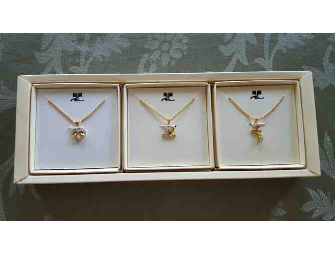 Here's a beautiful gift for that very special lady in your life. This is a set of three necklaces by French Fashion Designer, Andre Courreges (3/9/1923-1/7/2016). Andre Courreges was known as the creator of the GoGo boots. Each of the necklaces has the "AC" logo w/crystals.