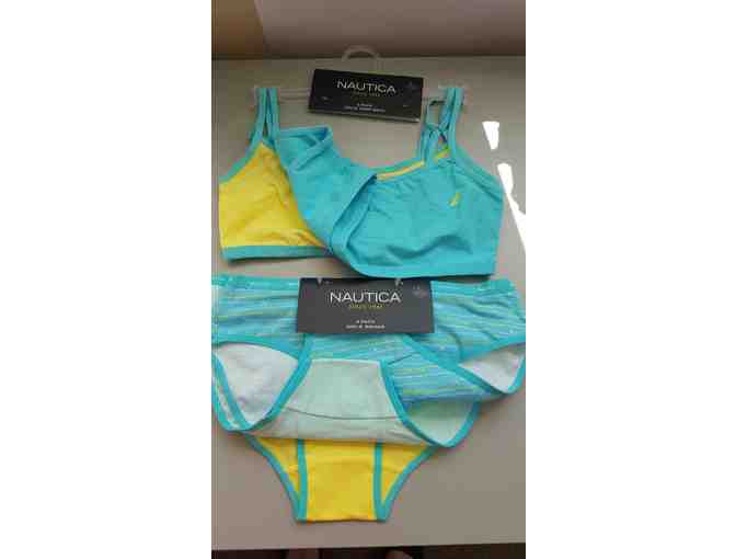 Nautical 2pk young girls' crop bras with 3pk matching panties size L (12-14)