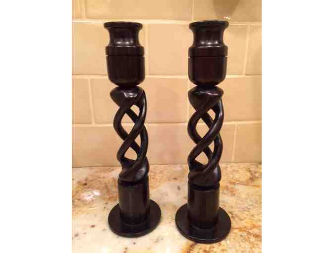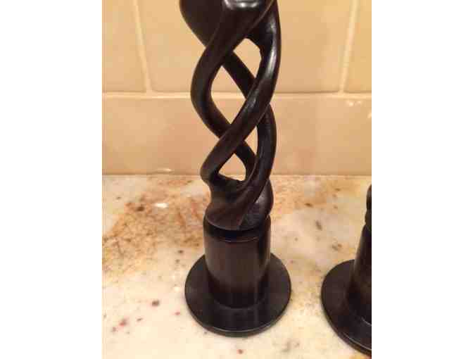 African Twisted Ebony Wooden Candle Holders