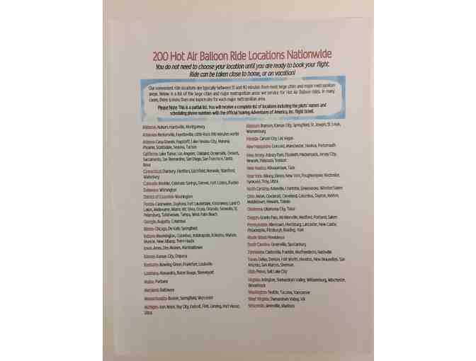 The winning bidder will receive their official ticket Issued by Soaring Adventures of America, Inc.- the largest balloon ride company in the US- including the 200 locations, the pilots’ names and scheduling phone numbers, after the auction.