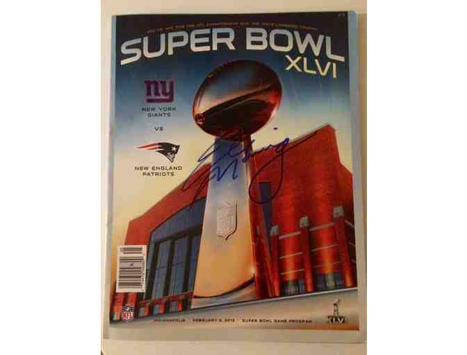 NY Giants Baseball Cap and 2012 Super Bowl Game Program signed by Eli Manning