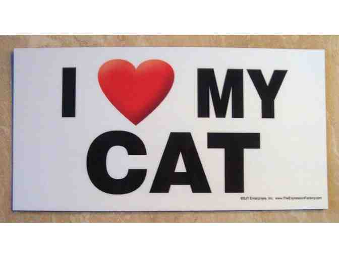 New "I Love My Cat" Magnet. This magnet is great for the car, in a locker, on a fridge, on a file cabinet or virtually any metal surface. Waterproof & proudly made in the USA. Measures 7.75" x 4". Made by Fun Magnets!