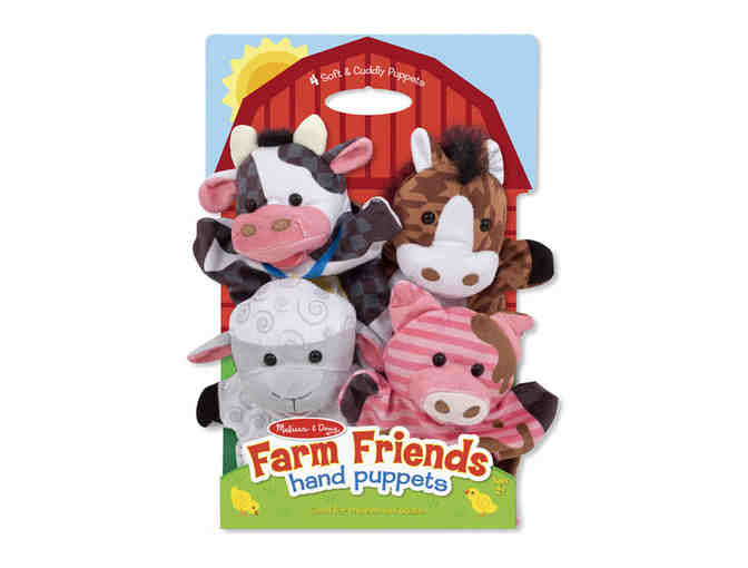 This four-piece hand-puppet set makes it easy for kids and caregivers to role-play together! Four simple glove puppets in a coordinated theme can act out a scene together, or be used separately for simple puppet play. Either way, they are great for developing motor skills, hand-eye coordination, communication skills, self-confidence, parent-child bonding, and so much more! Made with brightly patterned, washable fabrics and built to last, these soft and sweet hand puppets are sure to be go-to toys for years to come. Farm Friends Hand Puppets includes a sheep, cow, pig, and horse.