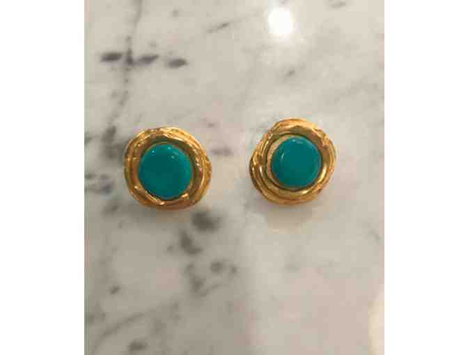 Beautiful turquoise and gold button earrings by Susan Shaw