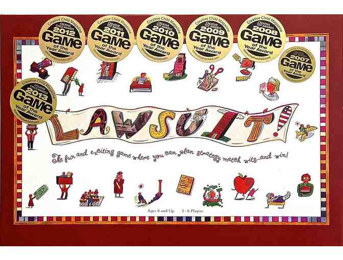 Step into a lawyer's shoes with this legal-themed LAWSUIT! board game for ages 8 and up. Players face whimsical legal scenarios and the choices lawyers make every day-- whether to pursue a settlement, accept a verdict or appeal, practice solo or in a partnership. LAWSUIT! introduces players to how our justice system works, whether on family game night or in a social studies or civics class. Join the fun, and play the only legal-themed board game designed with the whole family in mind.
