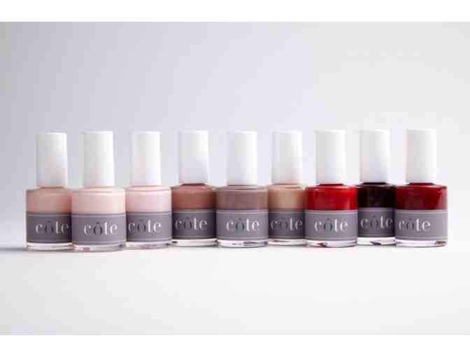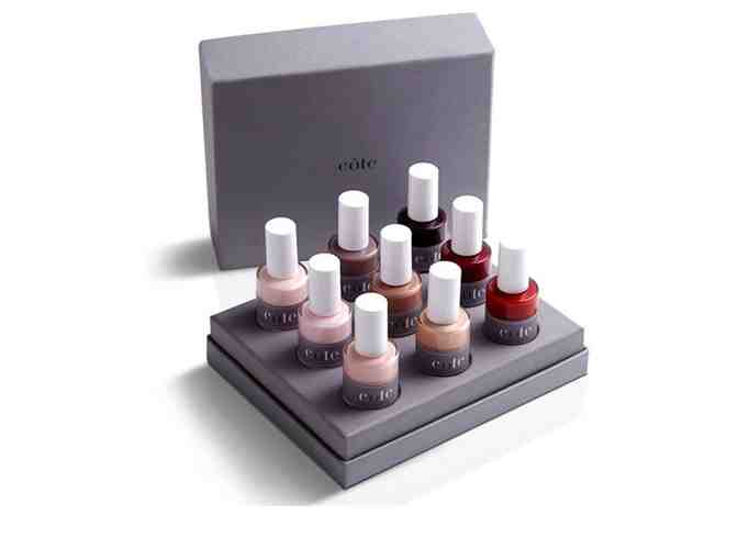 A specially curated set of nine luxurious, hand-poured, “five-free” polishes which are made in the united states, cruelty–free, vegan, FDA approved and free of the five major toxins associated with nail polishes: formaldehyde, dibutyl phthalate (DBP), toluene, camphor and formaldehyde resin. bottles are crafted from italian glass and feature a top–of–the–line brush, allowing for even strokes and effective application.