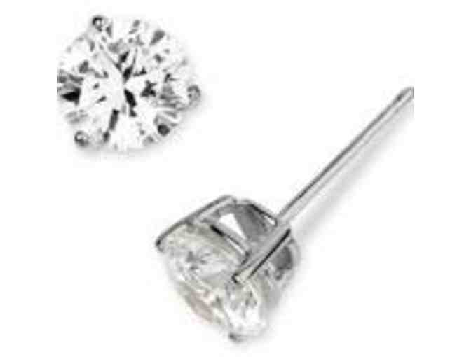 Classically chic handcrafted stud earrings feature ultra-sparkly, statement-making cubic zirconia stones secured by elegant triple-prong settings.
