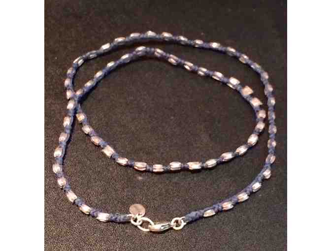 Petite crochet w/silver beads and clasp. Color blue/grey