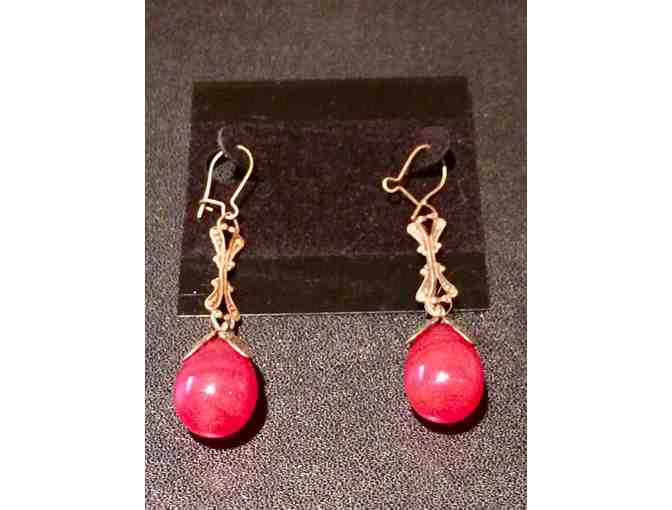 Red Carnelian Beaded Earings wiht gold-tone accents
