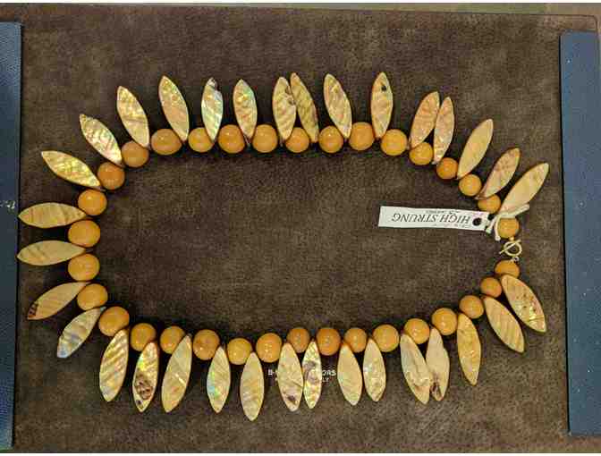 Large statement piece necklace of natural shell and vintage seed beads ~25" (choker)