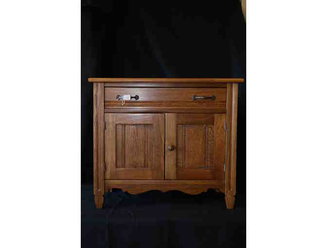 This oak antique commode has a manufacture date of around 1915. Solid child size. Beautiful condition.