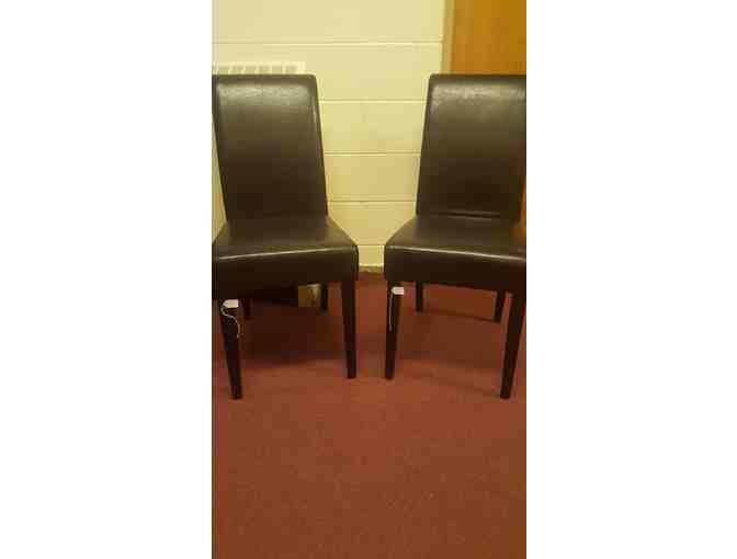 Two slightly used black leather high-back chairs.