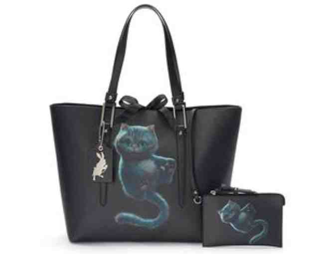 Designed by the award-winning costume designer from Tim Burton's new Alice in Wonderland franchise, Colleen Atwood's chesire cat handbag (16" x 12.5") is sure to impress everyone from die-hard Alice in Wonderful fans to those who have never even seen the movie.