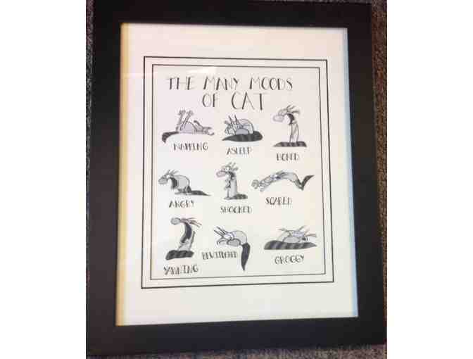 This lithograph (16" x 13") hilariously captures the many moods your cat goes through in a given day from peaceful napping to wide-eyed bewilderment. The perfect piece to add a touch of humor to any home!