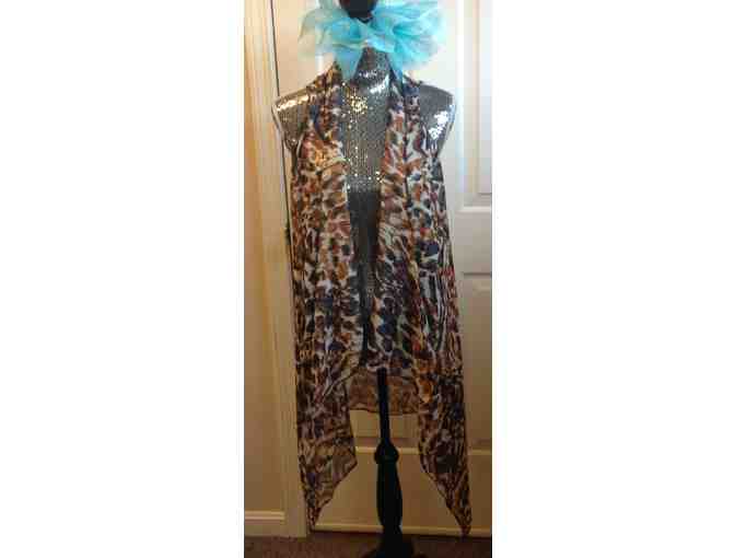 Long Sleeveless Print Wrap by Cara NY