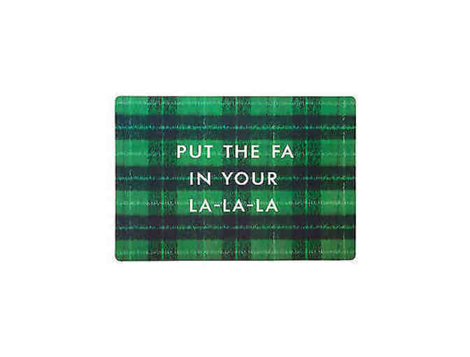 This set of six festive, plaid green placemats (13" x 19") by Kate Spade with the phrase, "Put The Fa In Your La-La-La" are the perfect accessory for holiday entertaining!
