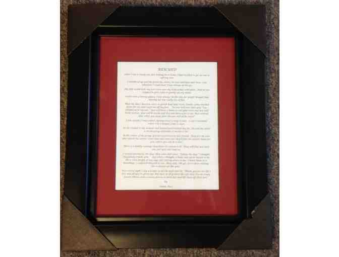 "Rescued" is a poem by Arlene Pace from a cat's point-of-view on being rescued and adopted out by a shelter. Deeply moving, this is the perfect poem for anyone who has adopted a rescue pet or is involved with shelter work. The poem comes set against a dark red background and with a black frame giving it sophisticated look that will go perfectly with any home decor.