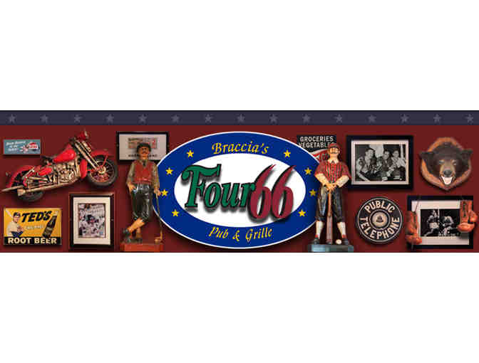 Braccia’s Four66 Pub & Grille features casual family dining with fast, friendly service. Specialties include everything from gourmet, thin-crust pizza and barbecue to creative pastas and fresh seafood.