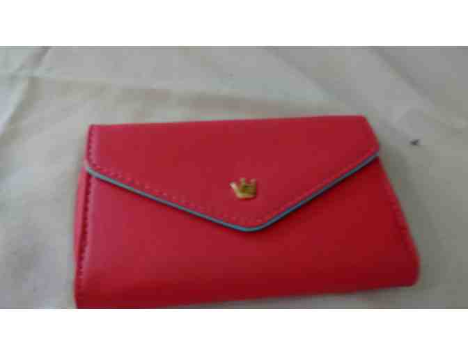 LEATHER LOOK RED CLUTCH PURSE 4 X 6 carrying strap and coin section inside that snaps