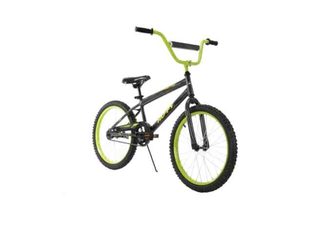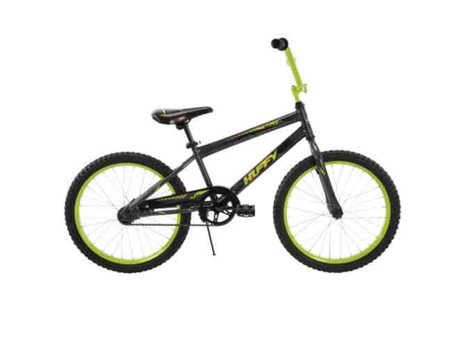 Huffy 20 Boys Rock It" Bike : Racing graphics, bold accents and comfortable features are the perfect combination for a great bike from Huffy! The Huffy Rock It bike combines pops of Bright Red with a Deep Gray frame for a sports-style look. The front handlebar pad is designed for safety and coordinates the style. The seat is decorated to match the look with padding to make sure the ride is comfortable. The single-speed bike is easy to ride and always in style. Kids grow quickly so Huffy made it easy to adjust the padded seat to the right height! Simply open the quick adjust lever, adjust the seat height, and securely close the lever back in place. Thats it! The Huffy bike has an easy to ride coaster brake and wide training wheels for sturdy sidewalk use.