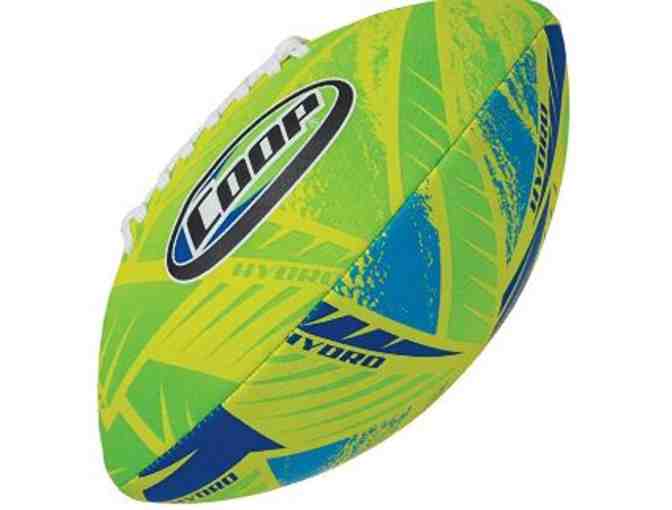 Go ahead, take the COOP Hydro football to the water to play cool and stay cool. These footballs have real double tuck laces with incredible grip and a waterproof cover. At 9.25”, it’s slightly smaller than standard play footballs, making its size just right for hands of all ages. Comes in a Tribal teal/yellow design.