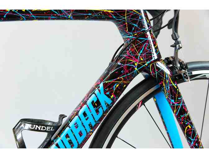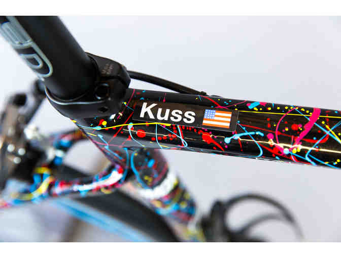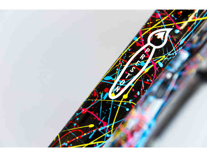 A wise response to the question "what do you want to be when you grow up" inspired Artist. Preston, 9, of Texas “wants to be an artist, because you can use your imagination to create something that people will enjoy looking at forever." In a style reminiscent of Jackson Pollock's iconic abstract expressionism, the bike begins with a black "canvas" and is drizzled with primary colors and finished with baby blue chainstay, fork and logo accents. For those of us who remember it, this bike may also remind us of a certain decade with a very distinct aesthetic. Artist is a 54 cm frame. The bike will be raced by Sepp Kuss of the Rally Cycling team at the 2017 Amgen Tour of California, one of the world’s biggest bike races.