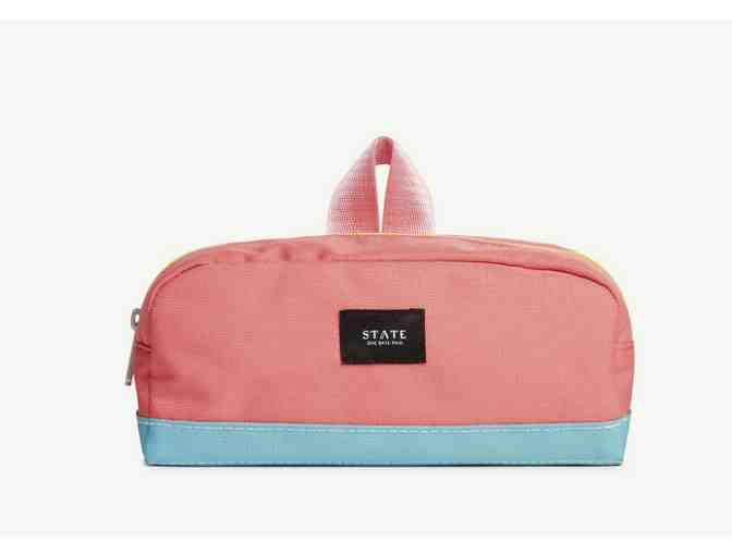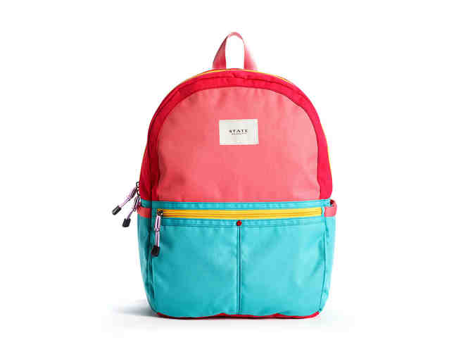 The Kane’s eye-catching colorful coral make it a fun statement backpack for all. Features a main storage compartment with supply organizers, key clip and iPad pocket, a zippered front pocket, and velcro side pockets. The Kane is finished with a signature STATE rivet in red.