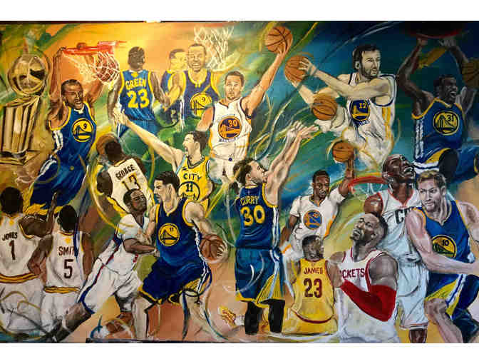 The original acrylic on canvas painting measures 24''×36" and is based on the events of the Warrior's championship 2015 season. Oakland artist Nick Motley is selling limited edition prints to help raise funds for sports and arts programs for inner city kids.