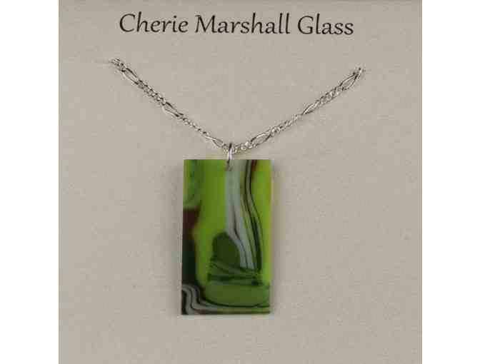 This nature inspired jewelry was created by Cherie Marshall of Burlington, Vermont. It is fused glass on a sterling silver chain and measures about 1 1/4" long by 3/4" wide. Handmade with love in Vermont!