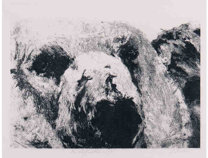 "I use my recent oil and acrylic paintings as a departure point for these images. Desiring to retain the presence of the human stroke I work with sponges, brushes and a rapidograph pen over faint photocopies of the paintings until an effect is obtained that translates well using the ImagOn process. The black and white palette symbolizes the clear cut choices humans have in the polar bear's uncertain future."