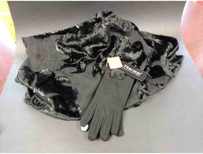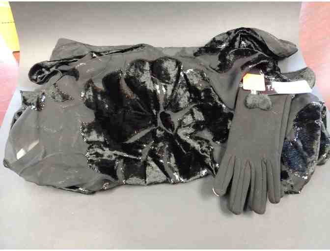 Designer Scarf (Floral Burnout) & Gloves (w/Touch Fingers) (Hillard's)