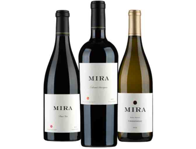 Enjoy Mira Winery's Collectors Series box set which includes three 100% varietal wines, handcrafted and made from the best small blocks from internationally renowned Napa Valley grower, Hyde Vineyard. Each set includes one bottle each of Mira Chardonnay Hyde 2013, Mira Pinot Noir Hyde 2013, and Mira Cabernet Sauvignon Stags Leap 2012.