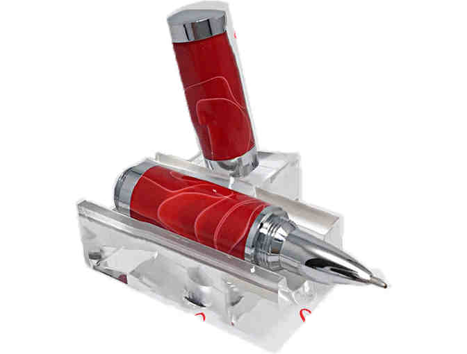 The LIPSTICK PEN is the perfect pen and fashion accessory in one! This is truly a beautiful gem that when not in use looks just like a lipstick, perfect for on-the-go in your handbag. It easily uncaps and screws onto the end to convert into a unique, fun and stylish pen. It comes with a black ink cartridge in the pen AND a spare one, as well as its own velveteen draw string pouch. It is hand-crafted and finished by John Baker on a lathe and the body is made of acrylic in "Red Ribbon" that has a gorgeous sheen and iridescence.