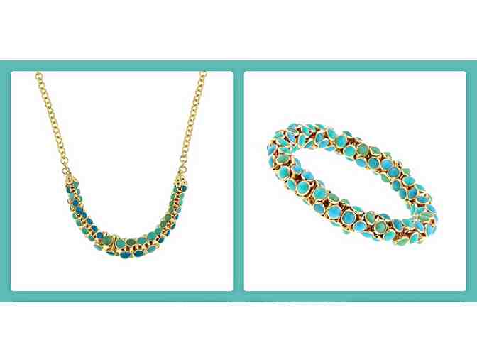 1928 JEWELRY: Matching Turquoise Enamel Necklace and Bracelet