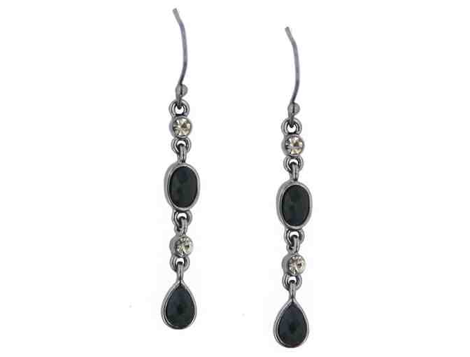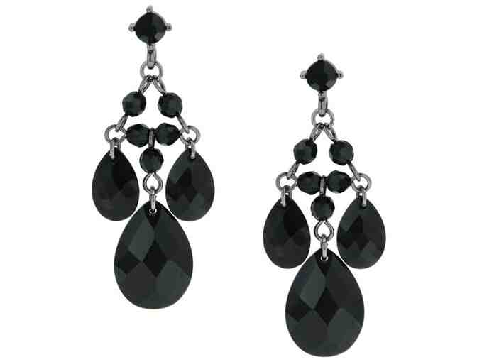 Combine class and elegance and you get these wonderful black and crystal drop earrings. Petite black diamond color crystals and multi-faceted jet black acrylic beads cascade down a polished hematite-tone finish. Measures 2"L x 0.25"W