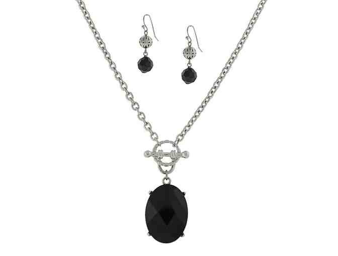 2. Silver-Tone Black Oval Pendant Toggle Necklace and Earrings Set ($25)
