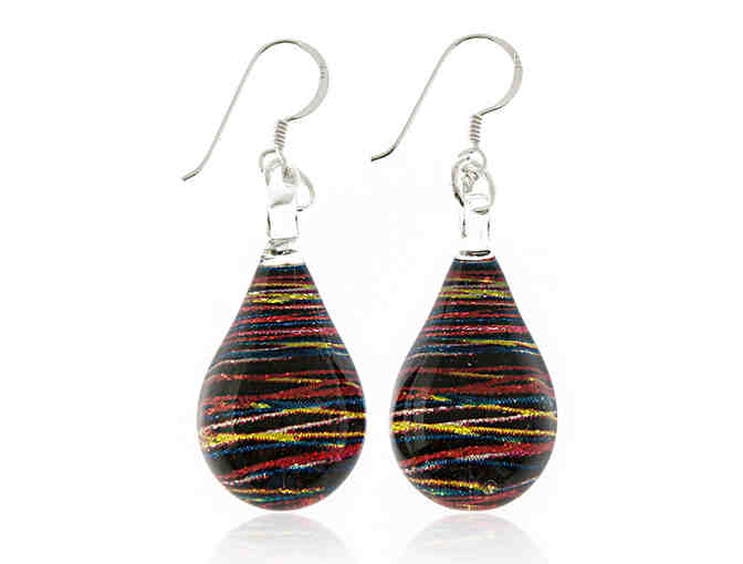 1. Chuvora Sterling Silver Hand-Painted Murano Glass Multi-Colored Abstract "Speed of Light" Dangle Earrings