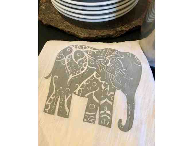 Also included: a white elephant-printed cloth enclosed that can be used as a burp cloth, nursing cloth or dish towel. Measures 56x30. 100% cotton.