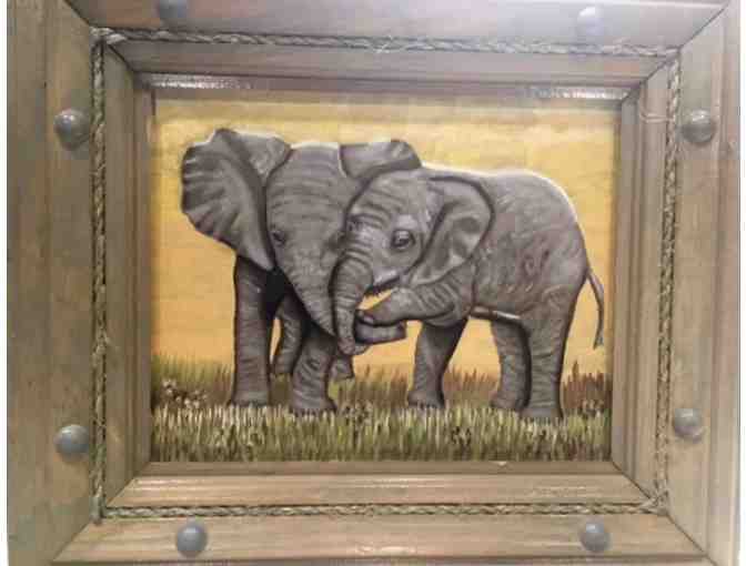 Charming oil on Canvass original work donated by a passionate elephant lover to help the Mendoza 4 move to sanctuary. Rendered in warm heartfelt colors.