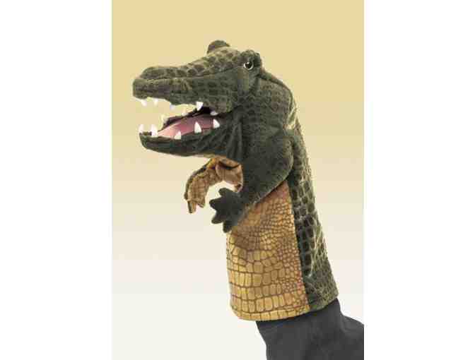 Folkmanis Puppet - The Crocodile Stage Puppet features an easily animated mouth and operable arms. Design details include soft sculpted plush with molded claws and teeth and a lots of fun to snap!